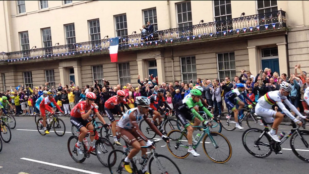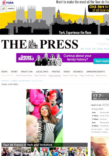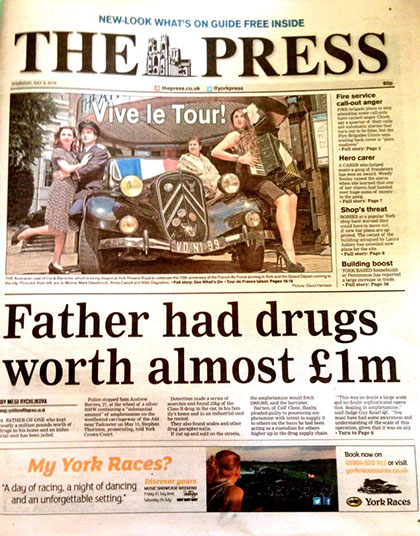 Post Glasto, recalling arriving in mud stained legs and hair, exited a car and to a media Photoshoot that was used for the front cover of 'The Press' newspaper and other local media papers of the UK for opening the official Le Tour De France in York UK during the parade for the cyclists!
