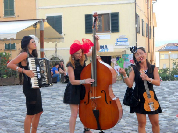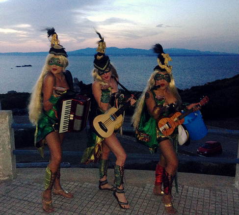 Upon Sardegna Island The Sirens sang french songs of Piaf , 3 particular songs we dedicated to an elderly couple who watched from their balcony top high above us. They waltzed to our music with such passion together. At conclusion to each of the songs they couple would lure down a basket with a rope filled with either money or presents for us. Such a magical experience to see such passion and love in their eyes and the fact we serenaded them on their balcony was pure bliss ;)