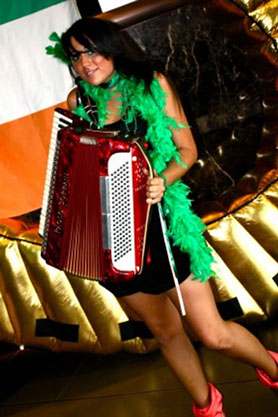 Available as a duo,, trio 4 or 5 piece band set up, The Broken POkers features Nikki Dagostino on the piano accordion and is available with guitar, vocals, flute, tin whistle, fiddle, banjo and mandolin, drums and bass.