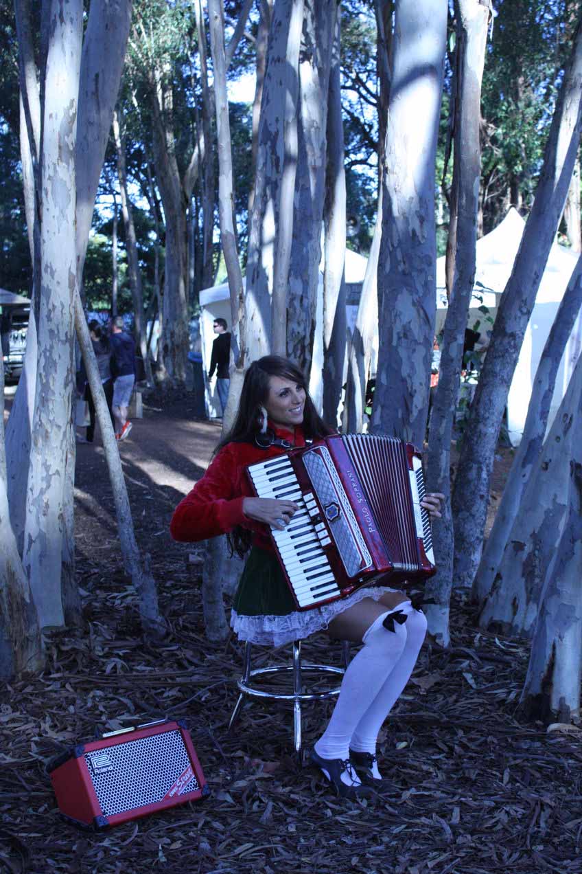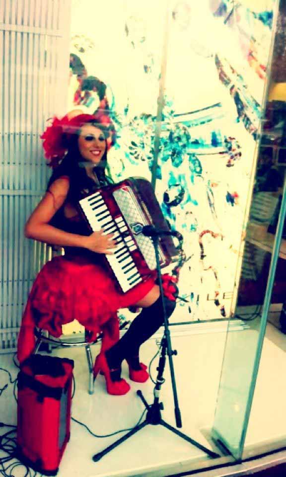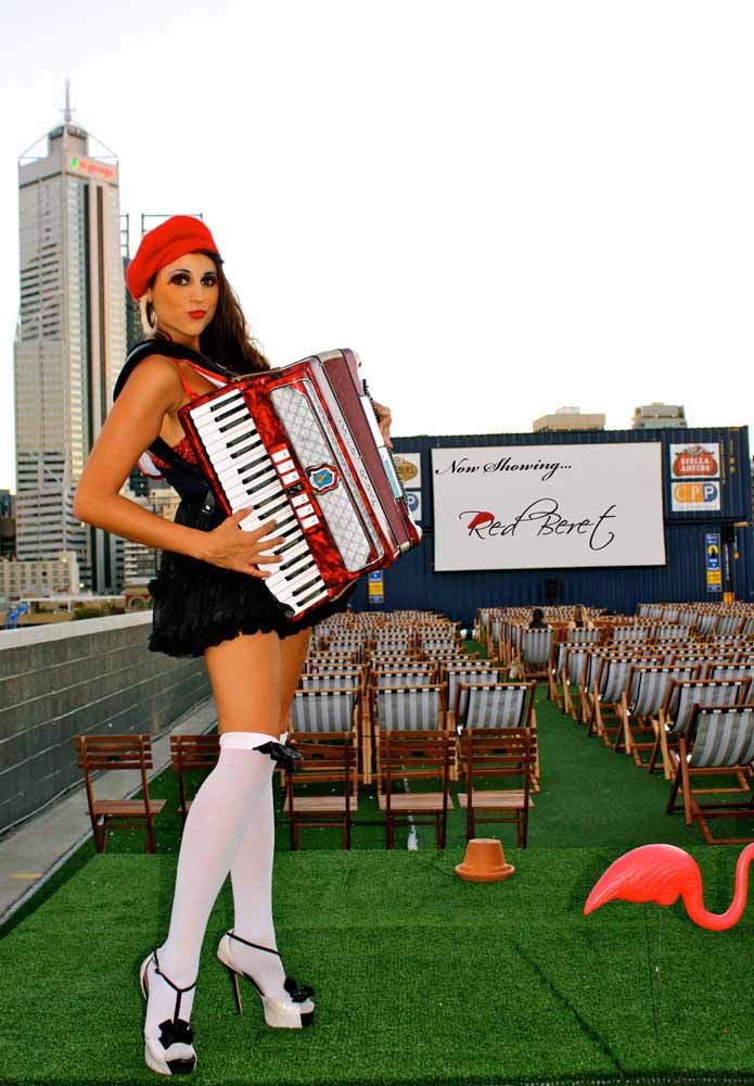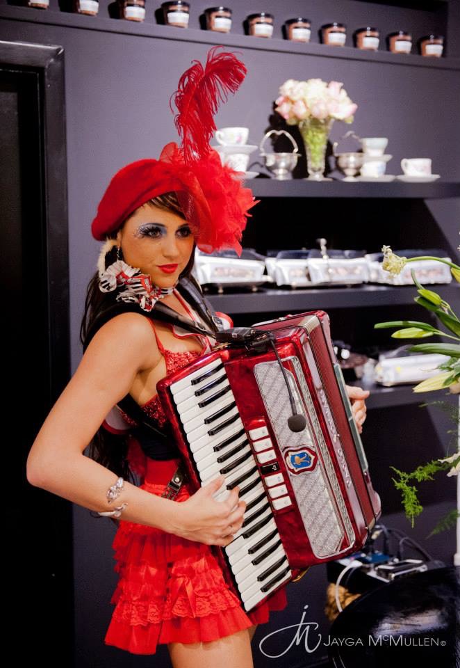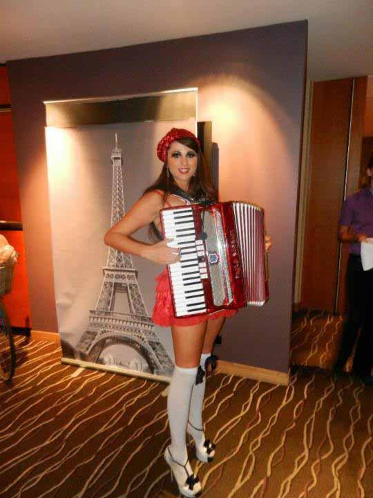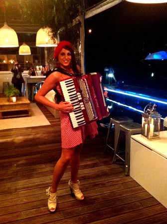 Nikki’s solo accordion act “Little Miss Squeezebox” caters for a wide demographic of audiences, atmospheres and themes. Her repertoire ranges from the Couture to the Contemporary- reminiscing vintage classics, contemporary commercial hits, dance electronica, German Polkas, Italian favoutrites and exquisite renditions of a huge French repertoire ideal for ambient background music which includes Edith Piaf’s well loved repertoire.