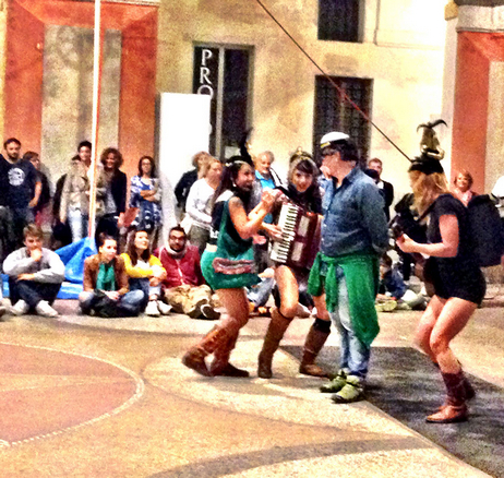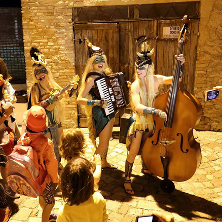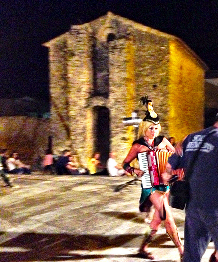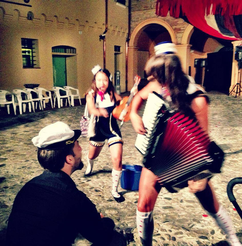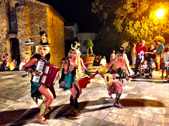Upon Sardegna Island The Sirens sang french songs of Piaf , 3 particular songs we dedicated to an elderly couple who watched from their balcony top high above us. They waltzed to our music with such passion together. At conclusion to each of the songs they couple would lure down a basket with a rope filled with either money or presents for us. Such a magical experience to see such passion and love in their eyes and the fact we serenaded them on their balcony was pure bliss ;)