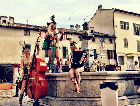 A memorable festival and highlight was performing in the stunning medieval town of Pennabilli Italy- 'Artiste In Piazza': a town that the Pope and the Dalai Lama have visited having a historic relationship with Nepal- where power tripped the entire festival once again and The sirens performed in complete darkness with only the light of hundreds of people and their mobile phones