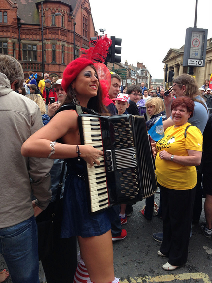Post Glasto, recalling arriving in mud stained legs and hair, exited a car and to a media Photoshoot that was used for the front cover of 'The Press' newspaper and other local media papers of the UK for opening the official Le Tour De France in York UK during the parade for the cyclists!