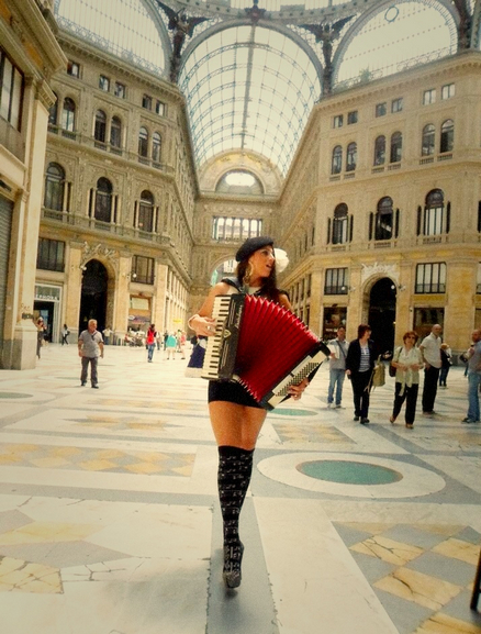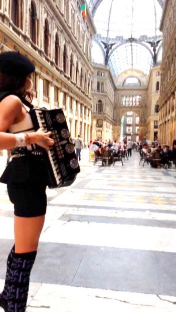 And on the life lesson journey, one quick lesson I had learned upon my arrival to Italy, performing on the cobbled-stoned streets during my first week here I believed I could do the "nikki heels" (stilts), (as I had packed a case full of them and they are my known thang in Australia) , filmed a video clip upon the roads of Napoli, and within 2 minutes of performing I've fallen (accordion on) in front of thousands of viewers ! The bruise and bumps on the long legs were evident for the next 6 weeks ;)