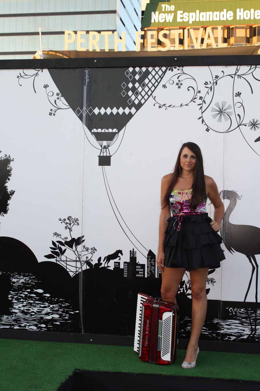 Nikki currently performs as an Accordionist alongside some of Perth’s most impressive and exclusive ensembles- including Music acts, Circus Acts, Theatre shows and more. She enjoys the pleasure of taking her audience on a trip around the globe by introducing them to authentic world sounds accompanying talented artists.